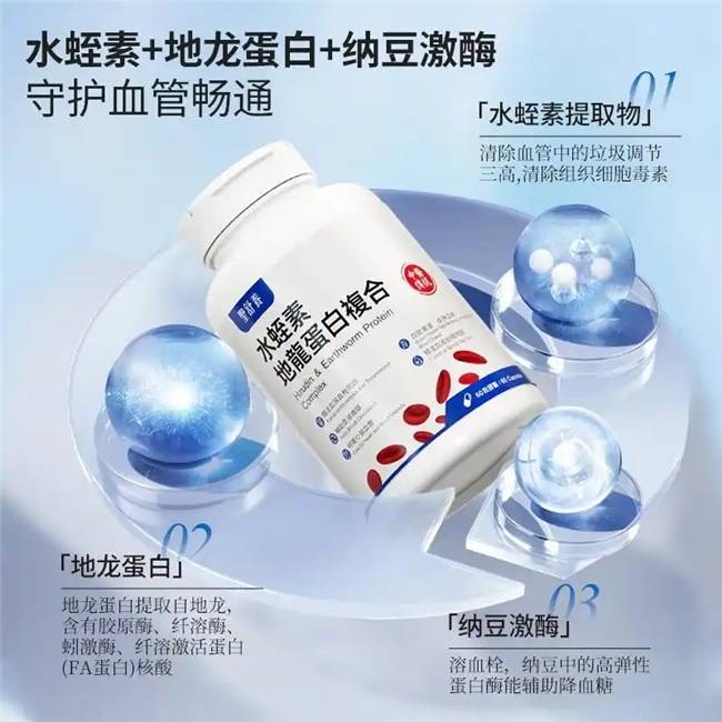水蛭素作为高效的直接凝血酶抑制剂,可迅速阻断血栓的形成通路;纳豆激酶通过激活纤溶酶原,加速已成形血栓的溶解;地龙蛋白则强化血管内皮的修复,改善其通透性与弹性。这三种成分形成完整的"防-溶-修"血管维护机制。