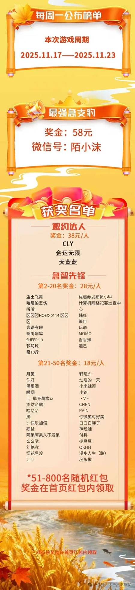恭喜以下幸运玩家成功瓜分4000元奖金!