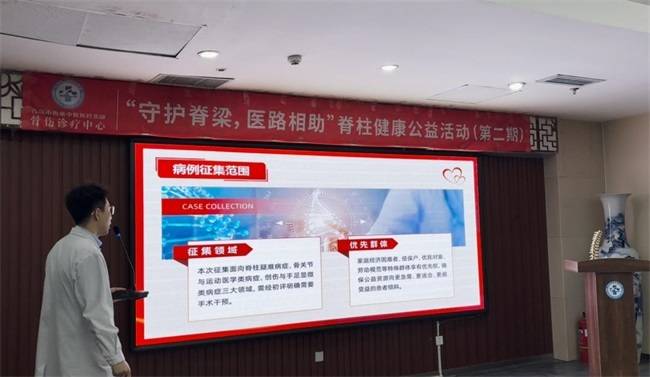 在公益讲堂环节,骨伤诊疗中心两位青年骨干医师,于胜文、管恩超分别结合典型临床案例,深入浅出地讲解了脊柱疾病的预防、治疗及康复知识。随后,活动针对患者普遍关心的治疗费用问题,重点介绍了科室与青岛市微尘公益基金会联合发起的“百例骨科疑难病例公益援助”项目。该项目不仅为符合条件的重症患者提供北京、南京等地权威专家的会诊、手术支持,还给予一定的治疗费用援助,切实减轻患者的经济负担,打通了专业诊疗与公益救助的双通道。
