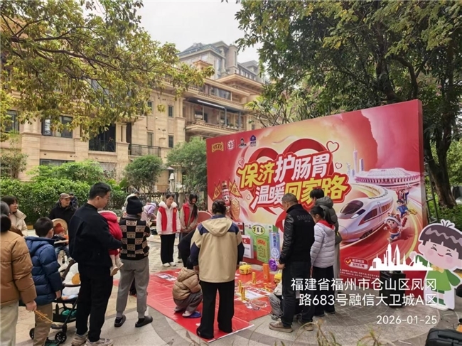 新春返乡季,安康伴我行。为守护群众返乡途中及居家团圆时的肠胃健康,传递新春暖意与公益温情,王老吉药业福建办(药品&食品)携手白云山采善堂、福建康佰家、永惠医药连锁,正式启动公益社区行动与路演活动,以多元服务与趣味互动,为市民送上一场兼具健康守护与年味氛围的新春盛宴。