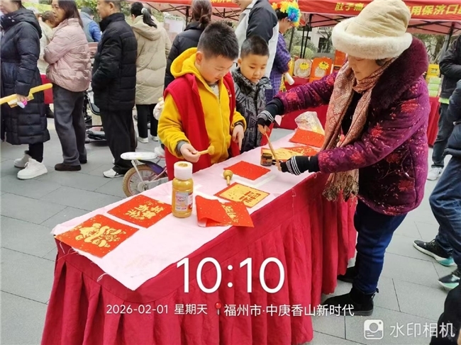 为传承民俗文化、传递新春祝福,活动邀请书法协会老师现场挥毫泼墨,手写春联与福字免费赠送给市民。笔墨流转间,一幅幅寓意吉祥的春联、一个个苍劲有力的福字新鲜出炉,承载着大家对新年的美好期许。市民们争相领取,将墨香年味与新春福气一同带回家,让传统年味在活动中得以延续与传递。