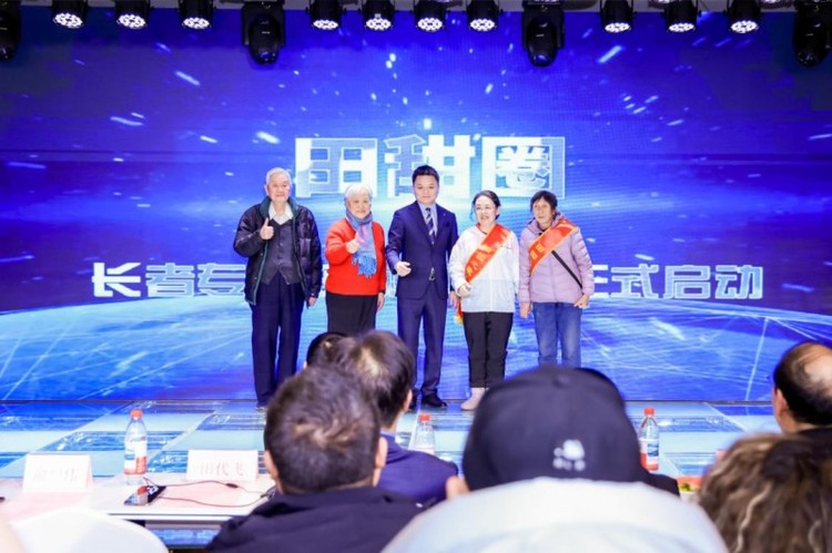 本次大会的重磅环节——"田甜圈"田园之家APP正式发布。经过技术团队大半年的"适老化"打磨,这款专为长者量身定制的APP,不仅是一款"老年版抖音",更是田园家人的专属精神家园。田代飞董事长与60岁、70岁、80岁、90岁四位不同年龄段的长者代表共同点亮启动屏,象征着科技跨越代际,让每一位长者都能与时代接轨,打开"老有所为"的新舞台。