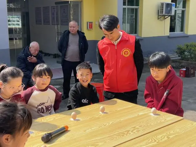 活动伊始,社区志愿者以“春分”和“龙抬头”为主题,带来一堂生动有趣的知识小课堂。志愿者手持话筒,向孩子们提问“春分为什么要竖蛋”“龙抬头有哪些习俗”等问题,孩子们踊跃举手、积极作答,在一问一答中了解节气由来、农耕智慧与民俗寓意,在轻松互动中感受中华传统文化的深厚底蕴。