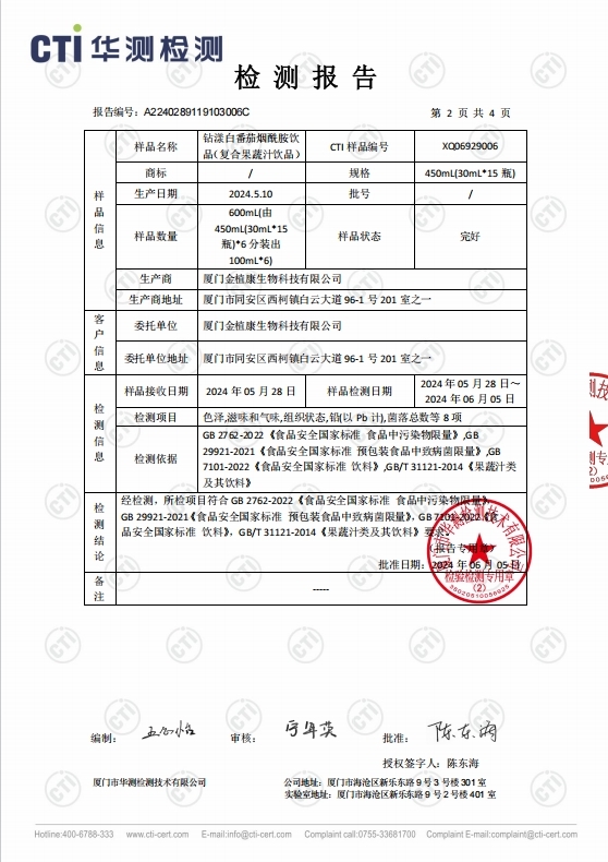 原料采购严格筛选,所有原料均来自正规渠道,白番茄、烟酰胺等核心成分经过多重纯度与安全性检测,确保活性达标、无任何污染物;生产全程采用无菌操作工艺,最大程度保留成分活性,避免二次污染;每份产品热量低于一根香蕉,搭配自然清甜果味,无人工香精、无蔗糖添加,带来愉悦的饮用体验,控糖人群可根据自身情况适量饮用,孕期(遵医嘱)、哺乳期女性也可适量饮用,温和无刺激。