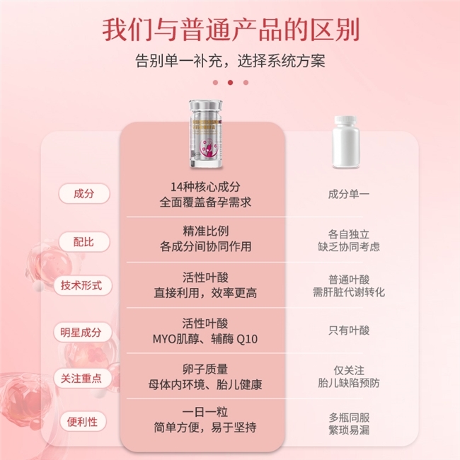 核心优势:肌醇 + 活性叶酸,温和养卵,适合二胎基础调理